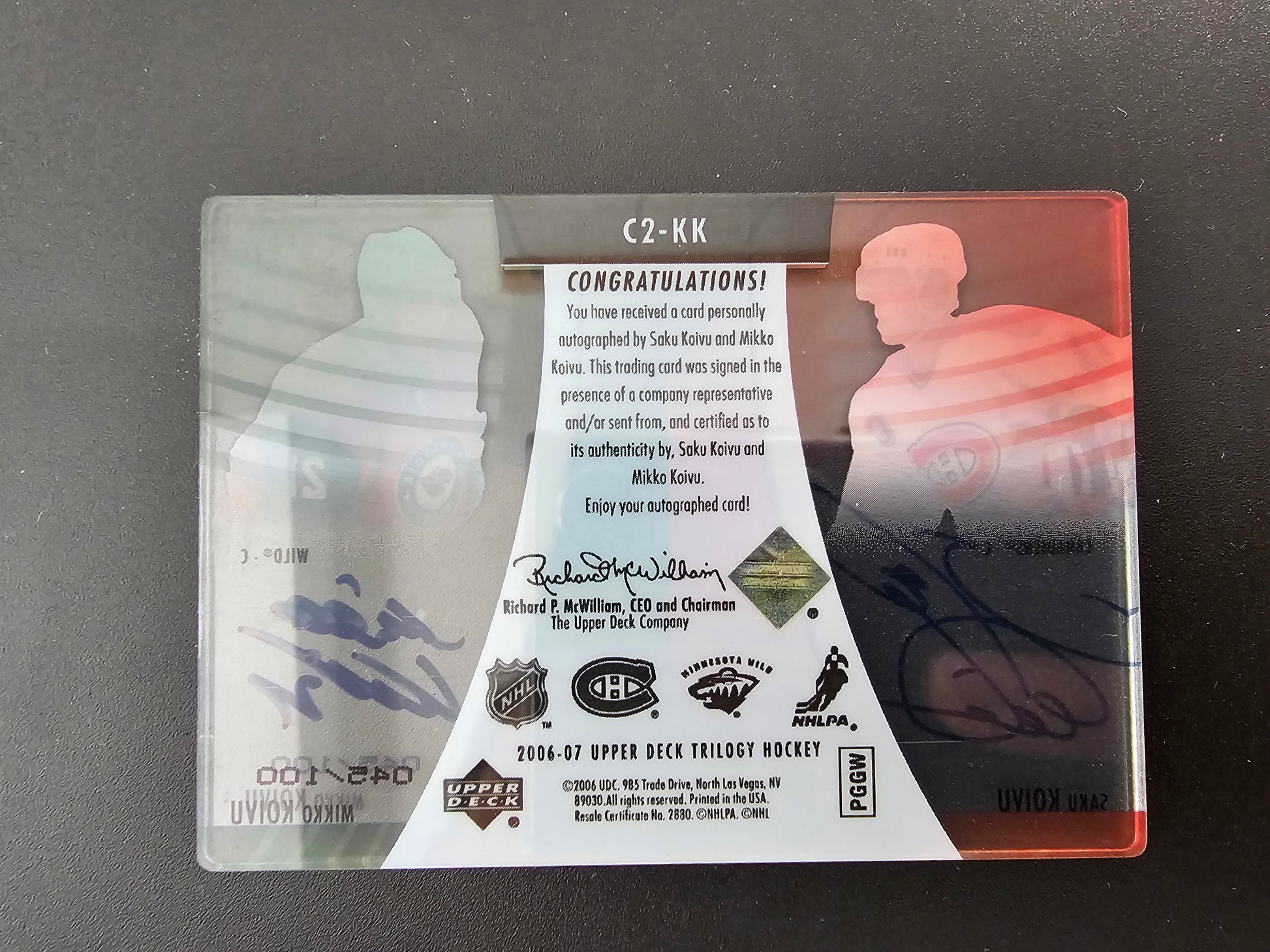 2006-07 Upper Deck Trilogy 1-2 Combo Clearcut - Saku Koivu - Mikko Koivu #C2-KK /100