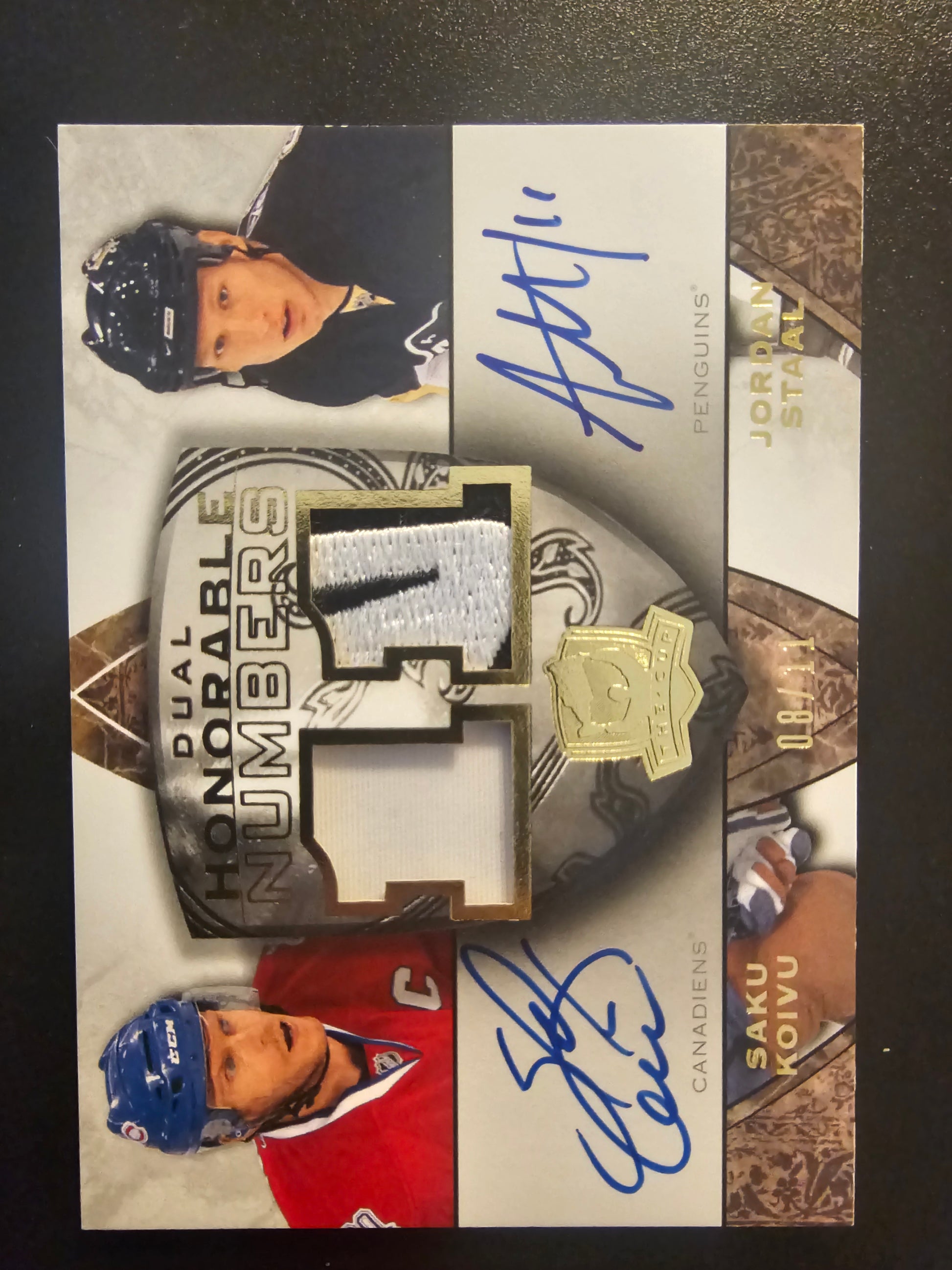 2008-09 Upper Deck The Cup - Dual Honorable Numbers Patch Autographs - Saku Koivu / Jordan Staal #HN2-KS /11