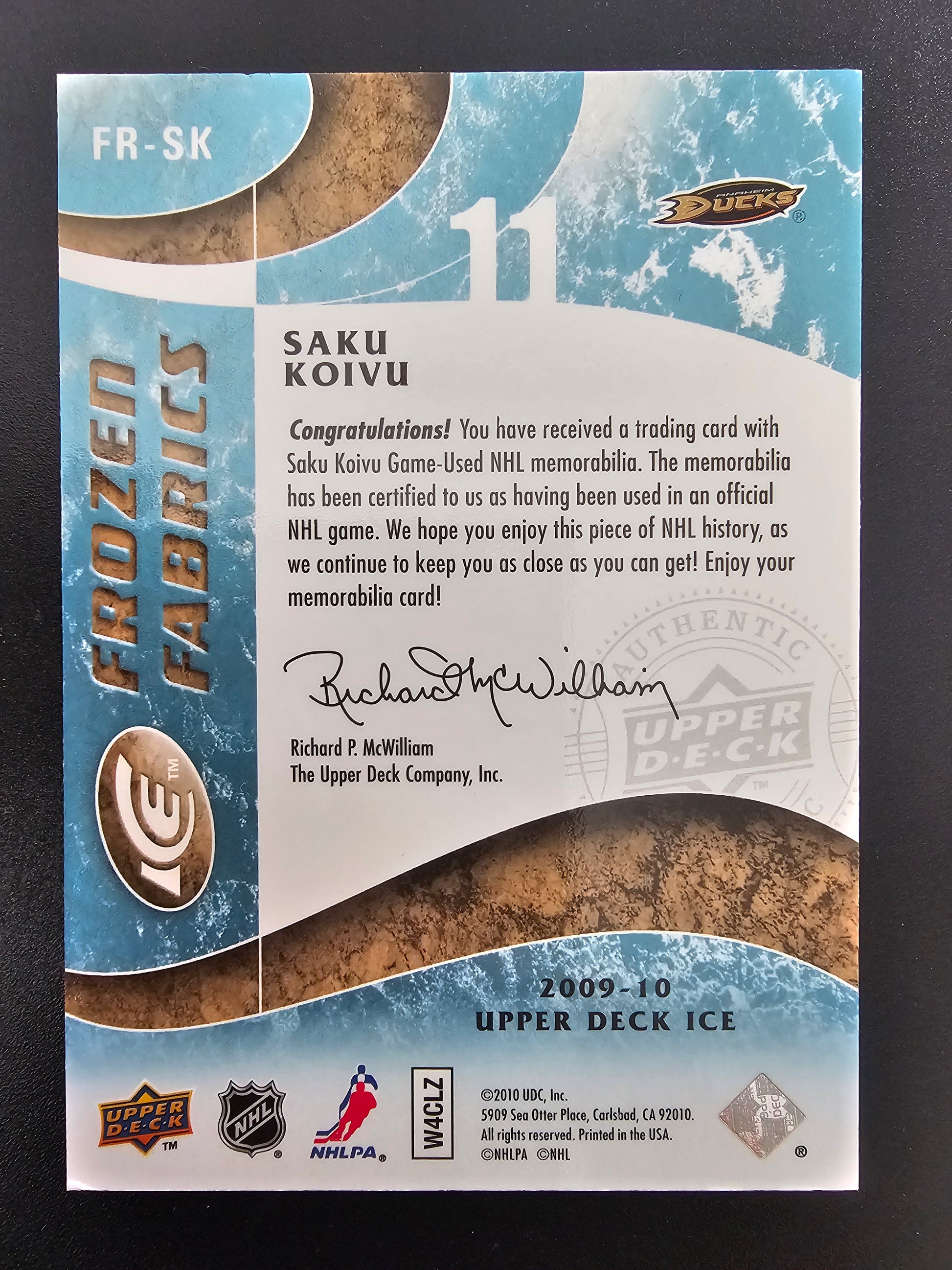 2009-10 Upper Deck Ice - Frozen Fabrics Patch - Saku Koivu #FR-SK /15