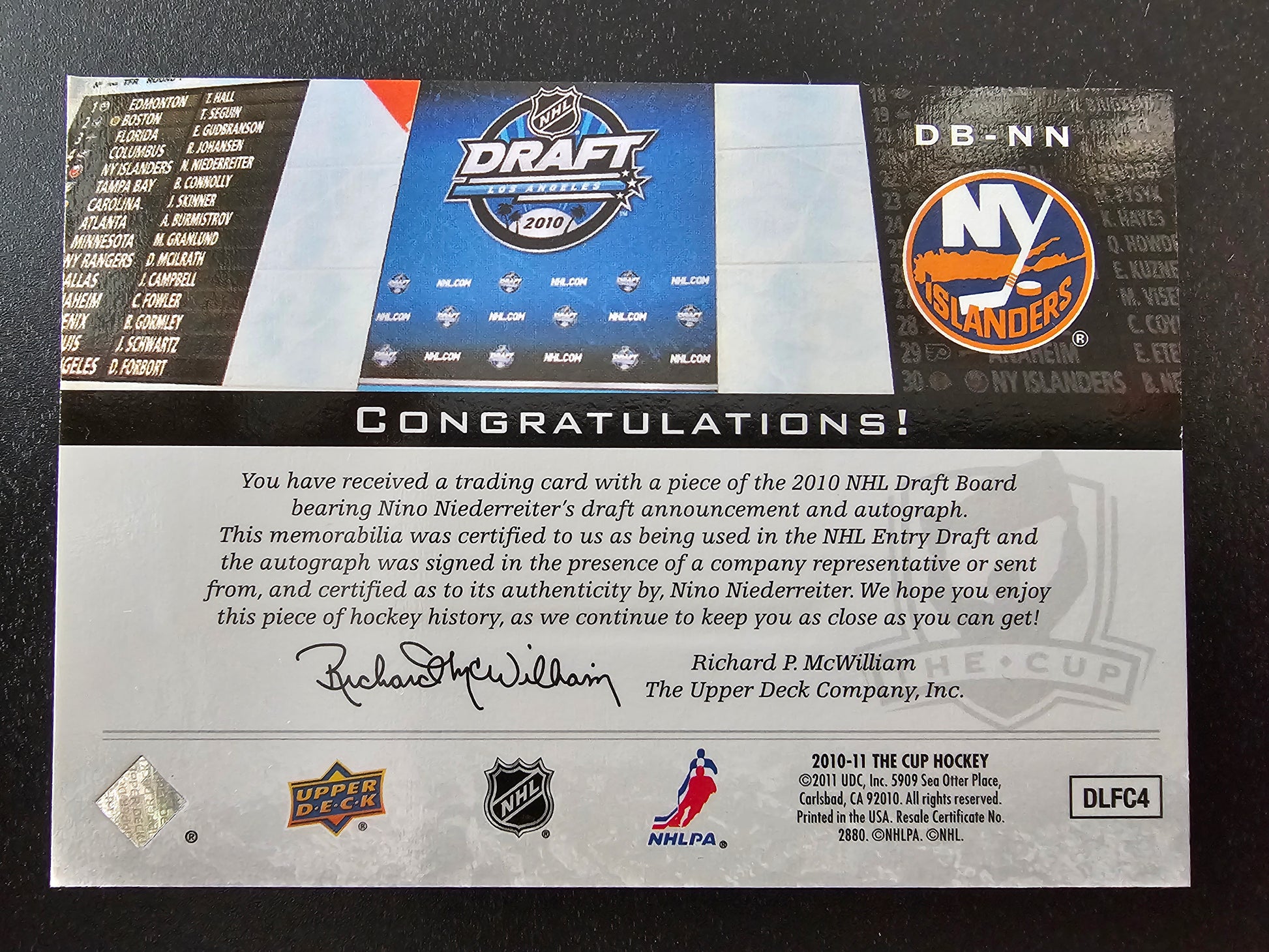 2010-11 Upper Deck The Cup - Auto Draft Boards - Nino Niederreiter #DB-NN