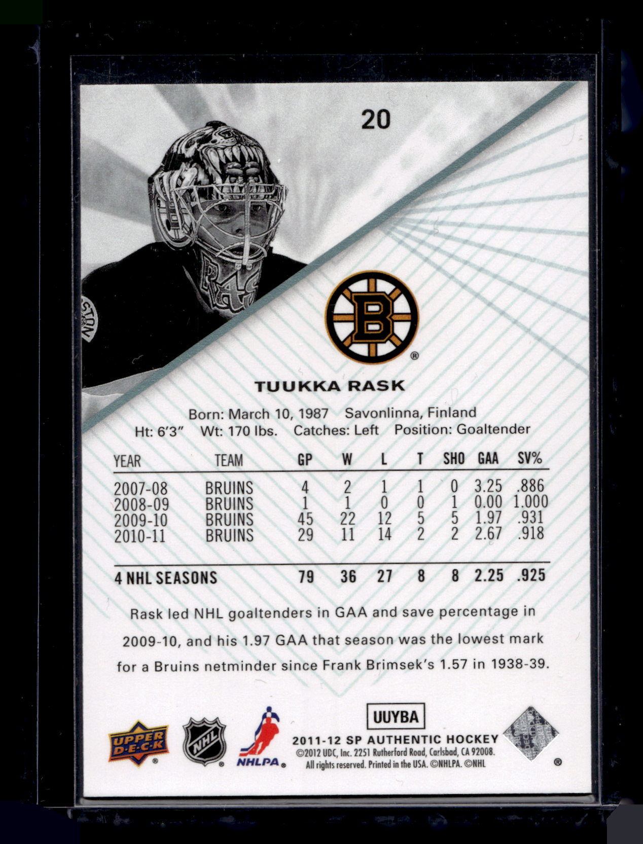 2011-12 Upper Deck SP Authentic - Tuukka Rask #20