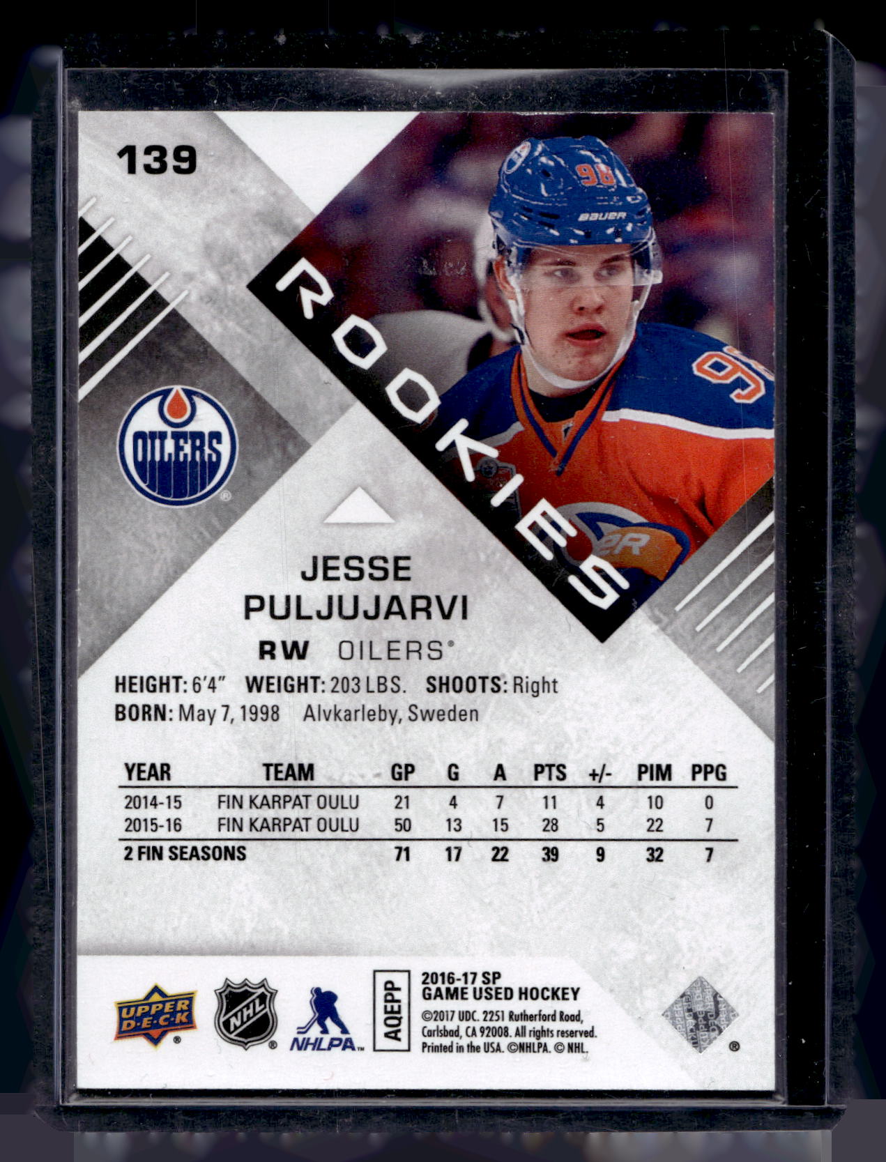 2016-17 Upper Deck SP Game Used - Authentic Rookies - Jesse Puljujarvi #139 /98 RC