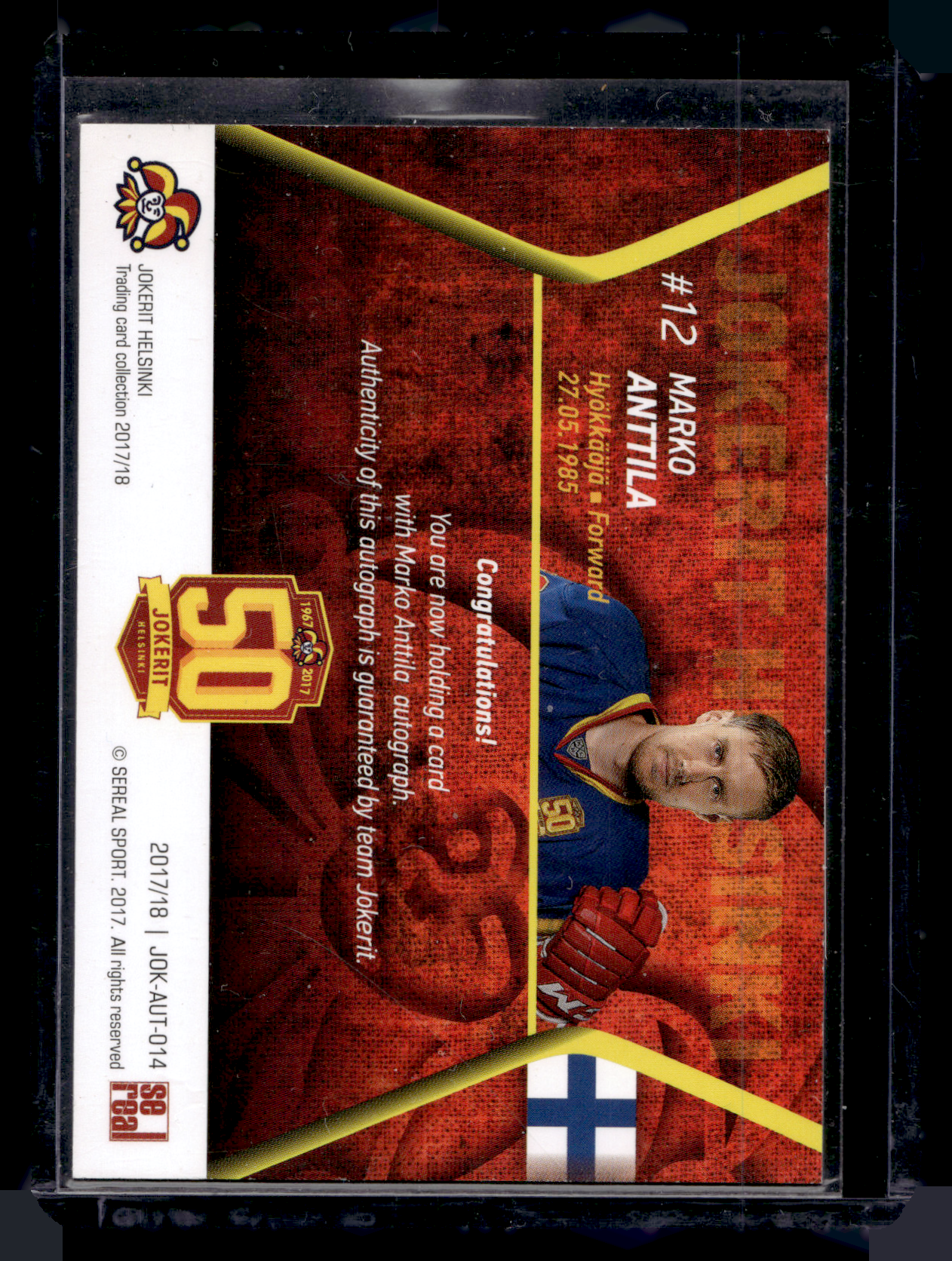2017-18 Sereal Jokerit Autograph - Marko Anttila #JOK-AUT-014 /50