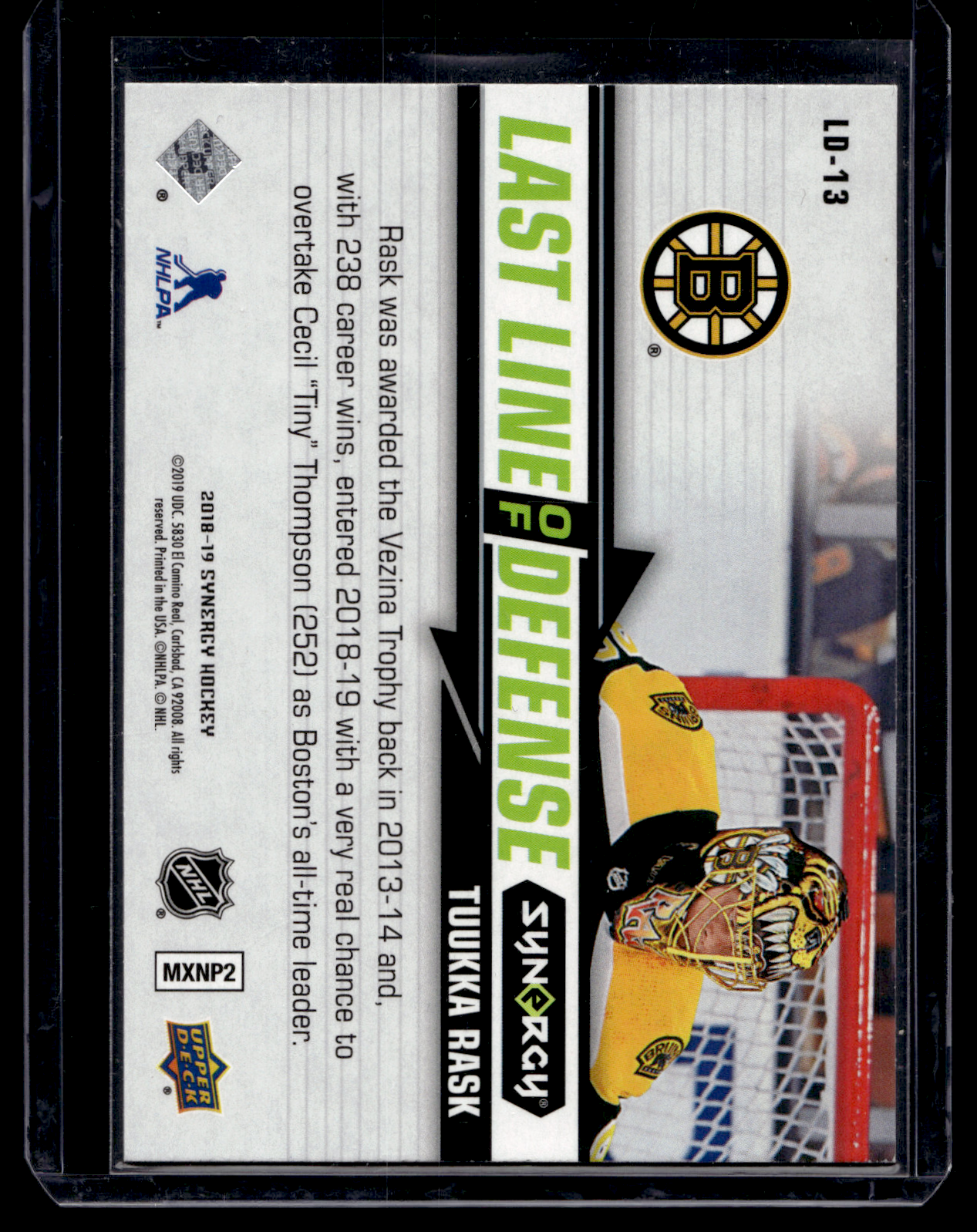 2018-19 Upper Deck Synergy - Last Line of Defense - Tuukka Rask #LD-13