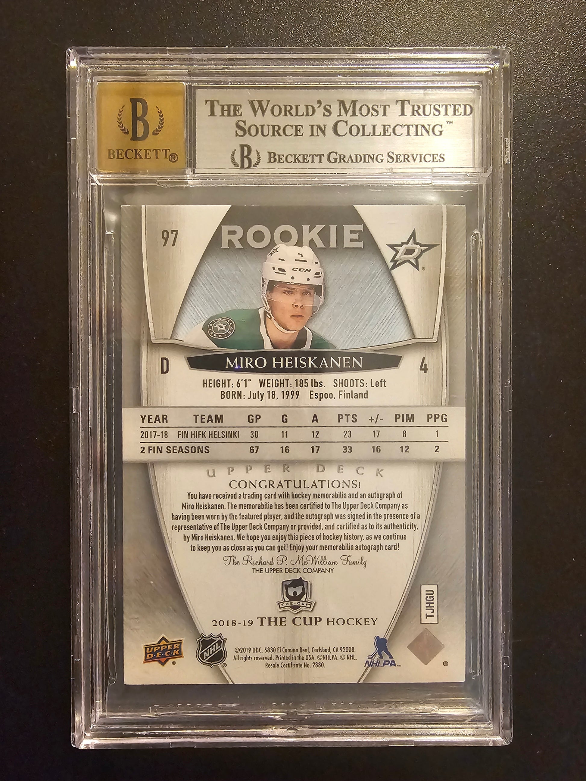 2018-19 Upper Deck The Cup - Rookie Patch Autograph - Miro Heiskanen #97 /249 BGS 8.5 Auto 10 RC