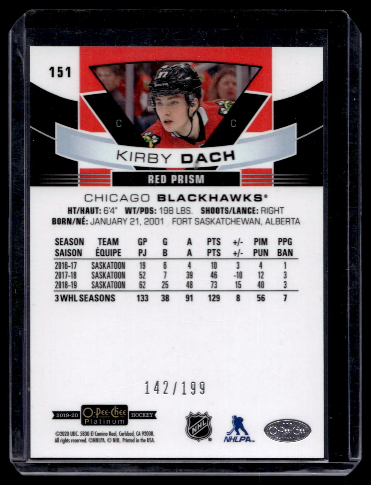 2019-20 Upper Deck O-Pee-Chee Platinum - Red Prism - Marquee Rookies - Kirby Dach #151 /199 RC