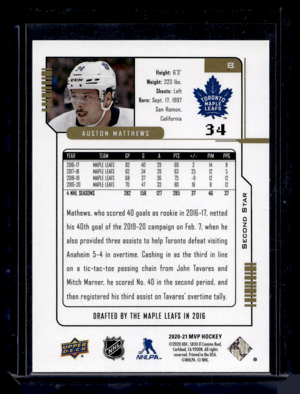 2020-21 Upper Deck MVP - 20th Anniversary - 2nd Star - Auston Matthews #8