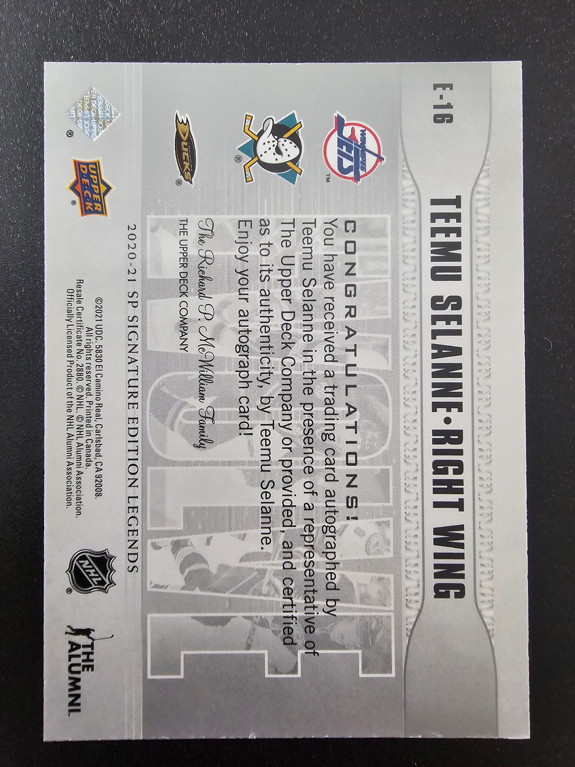 2020-21 Upper Deck SP Signature Edition Legends - Evolve Silver Spectrum Foil Autographs - Teemu Selanne #E-16