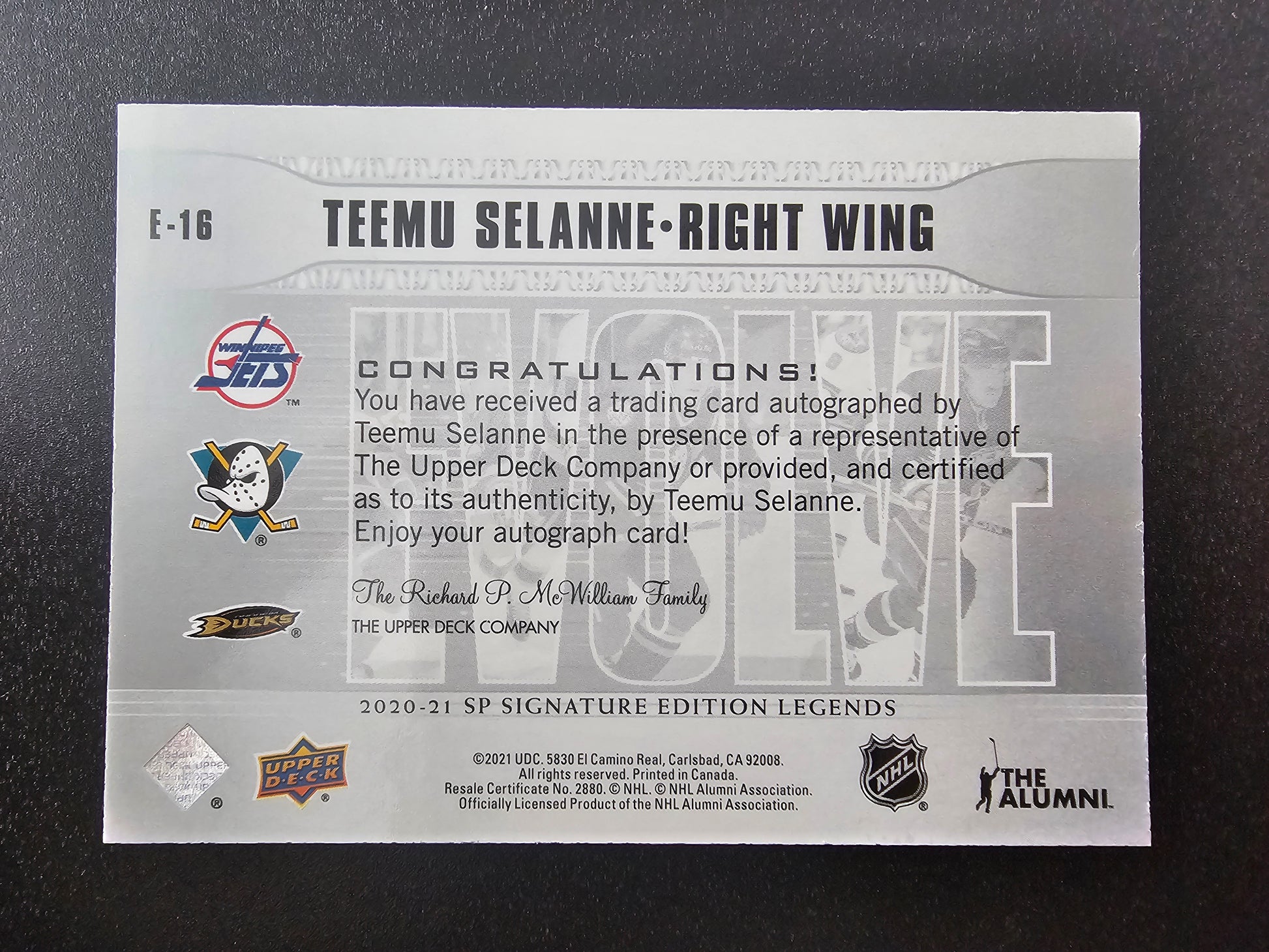 2020-21 Upper Deck SP Signature Edition Legends - Evolve Silver Spectrum Foil Autographs - Teemu Selanne #E-16 /35