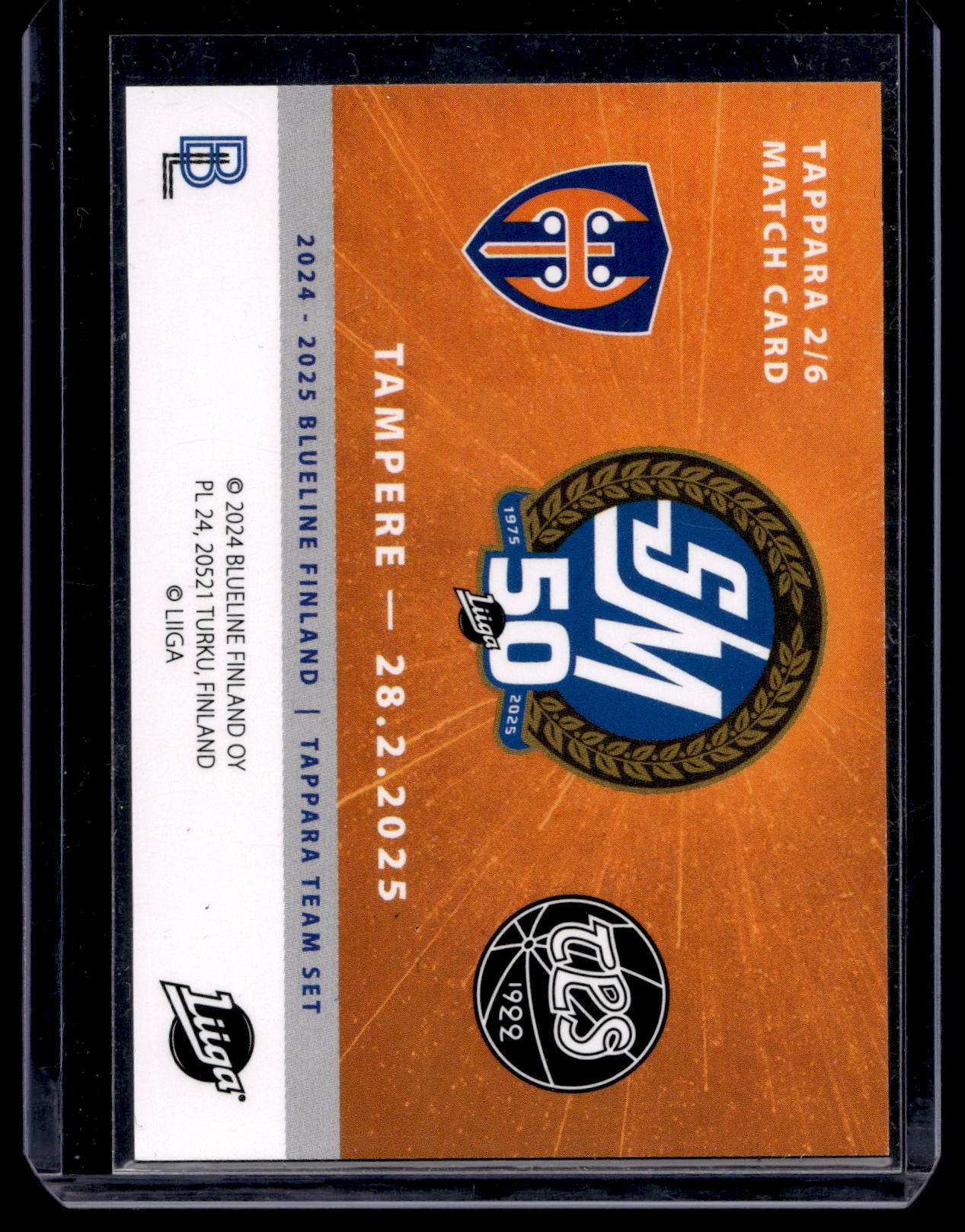 2024-25 Blueline Tappara Team Set - Match Card - Aleksi Matinmikko #2