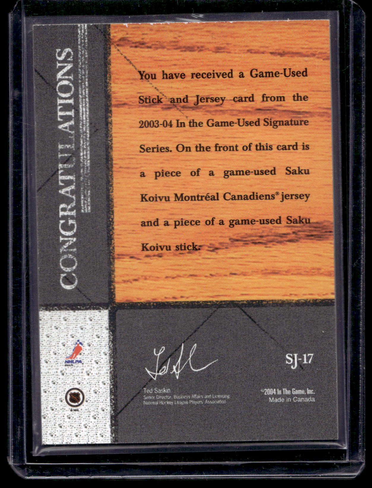 2003-04 In the Game-Used Signature Series - Stick & Jersey - Saku Koivu #SJ-17