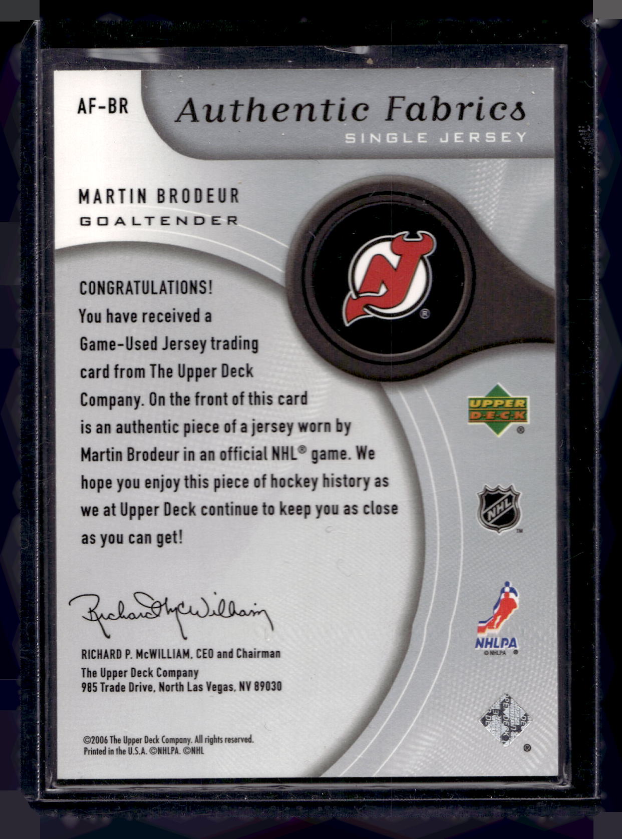 2005-06 Upper Deck SP Game Used Edition - Authentic Fabrics - Martin Brodeur #AF-BR