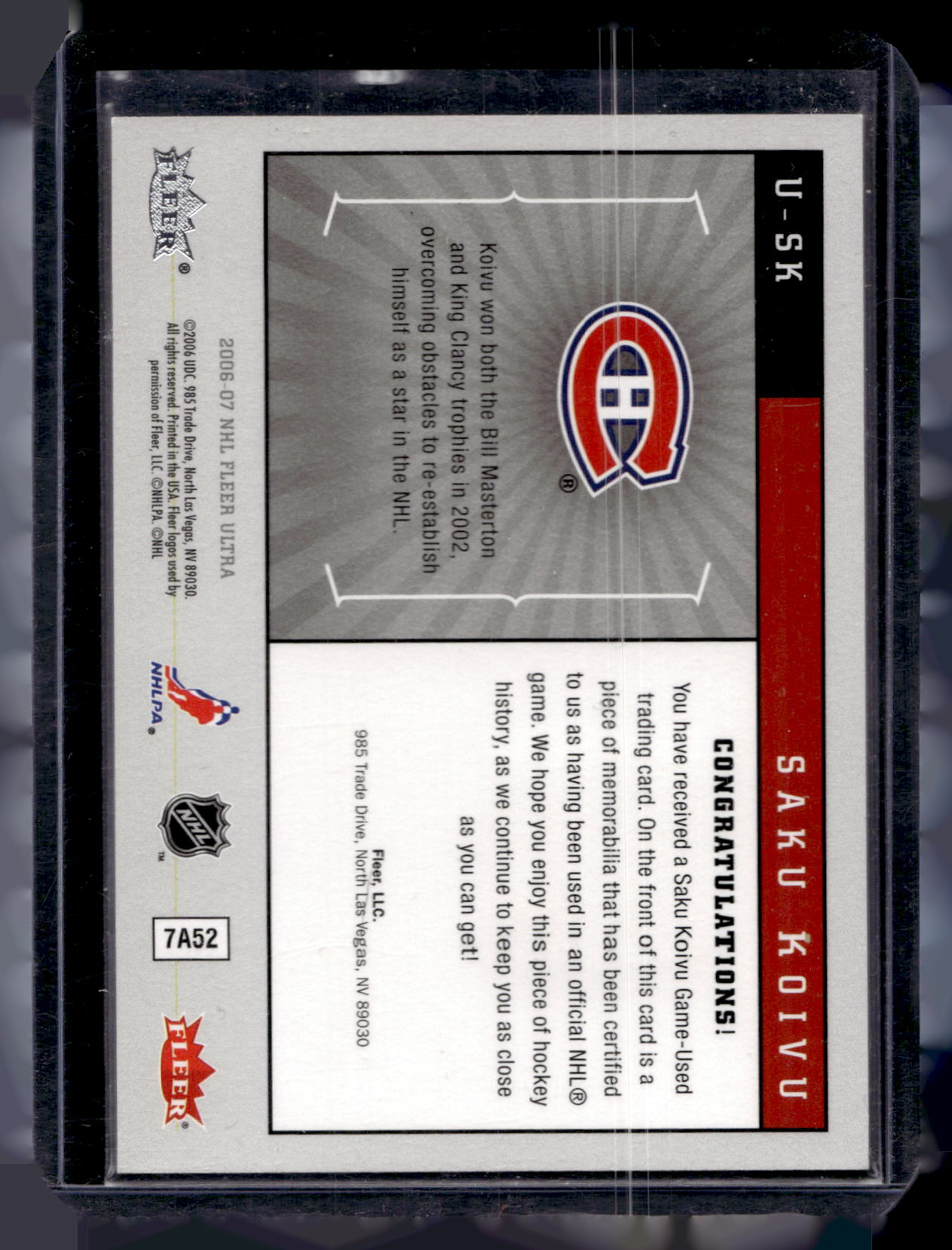 2006-07 Fleer Ultra - Uniformity - Saku Koivu #U-SK
