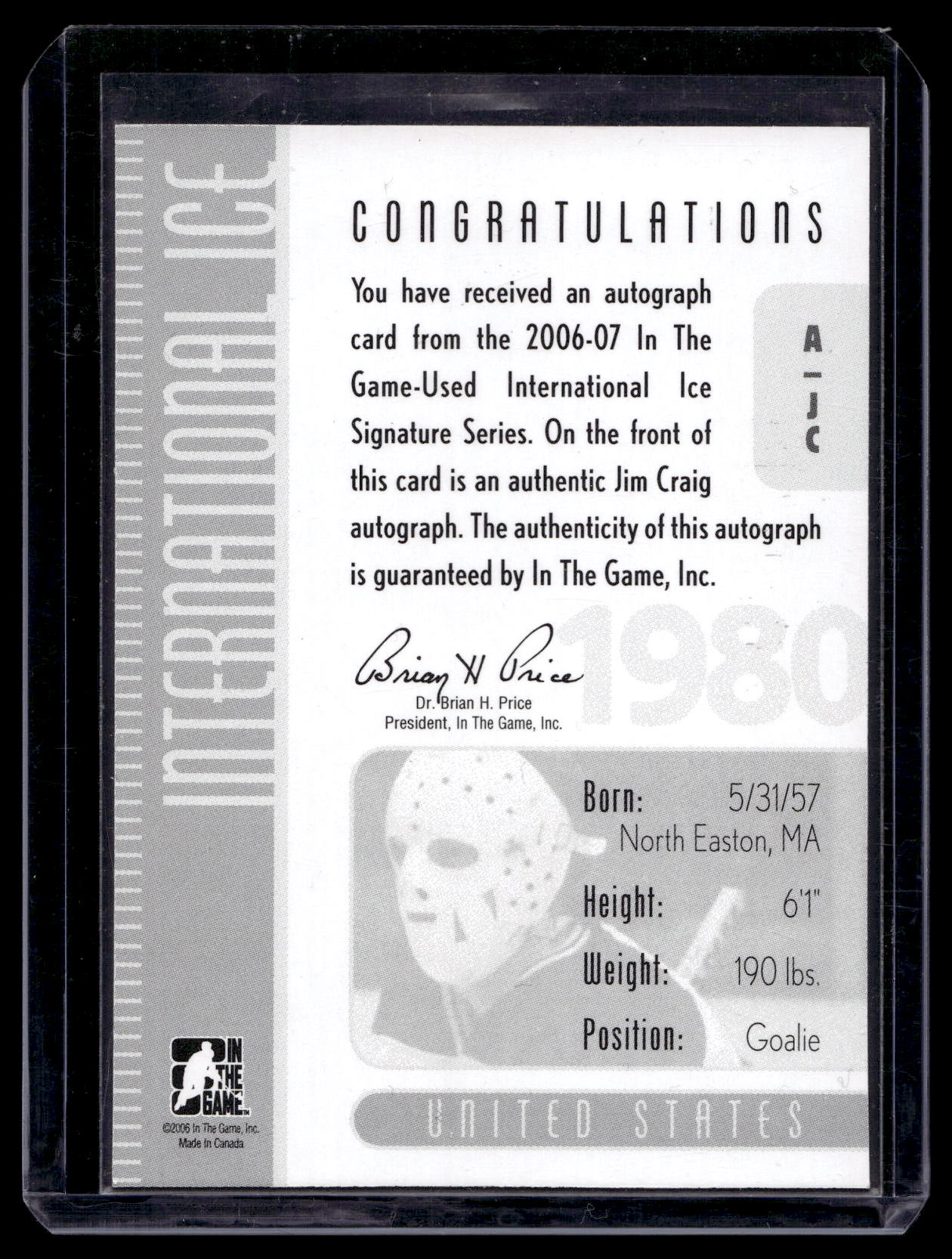 2006-07 In the Game-Used International Ice Signature Series - Autographs - Jim Craig #A-JC