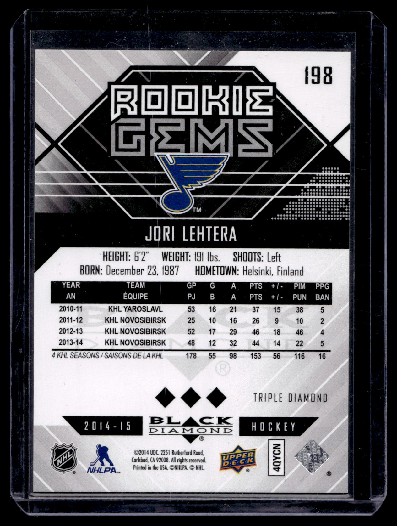 2014-15 Upper Deck Black Diamond - Orange - Rookie Gems - Jori Lehtera #198
