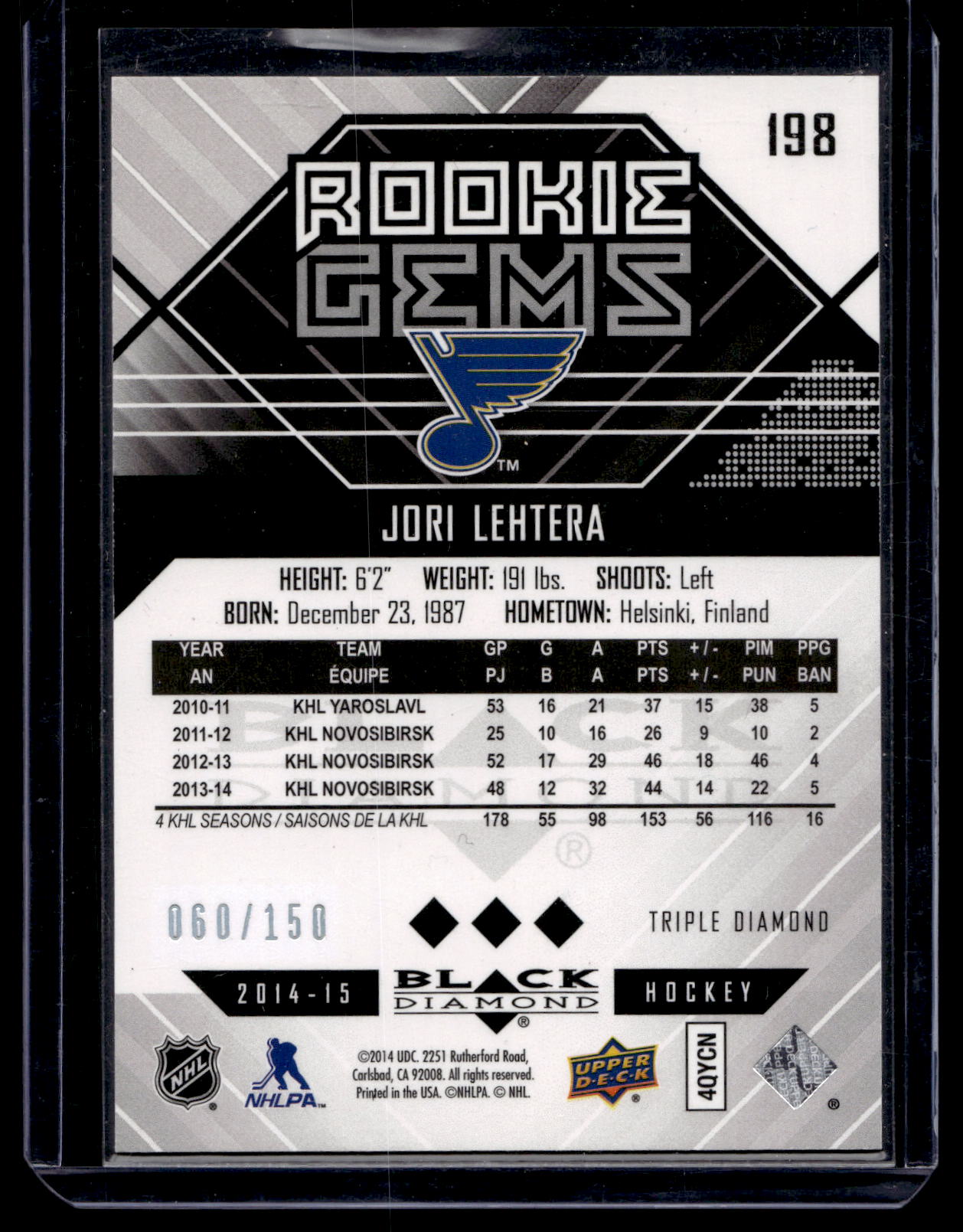2014-15 Upper Deck Black Diamond - Star Rubies - Rookie Gems - Jori Lehtera #198 /150 RC