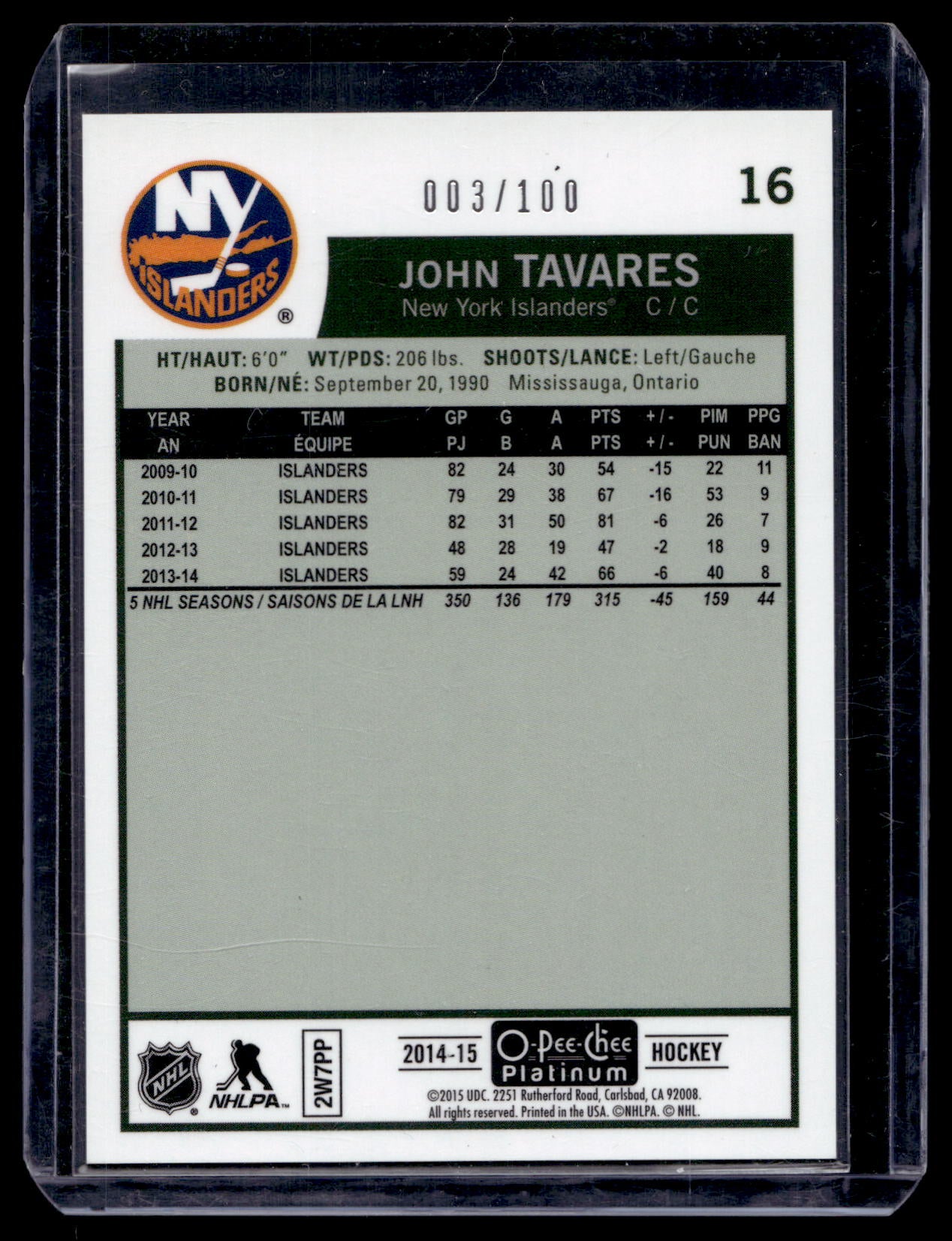 2014-15 Upper Deck O-Pee-Chee Platinum - Retro - Black Rainbow - John Tavares #16 /100