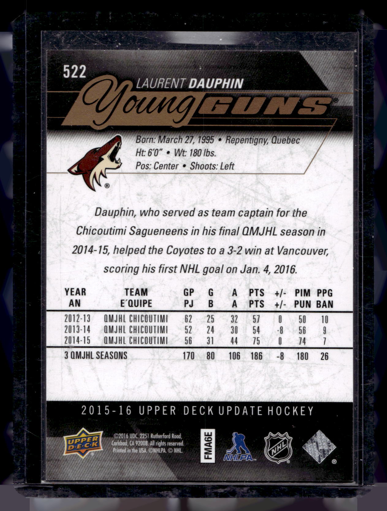 2015-16 Upper Deck - Young Guns High Gloss - Laurent Dauphin #522 /10 RC