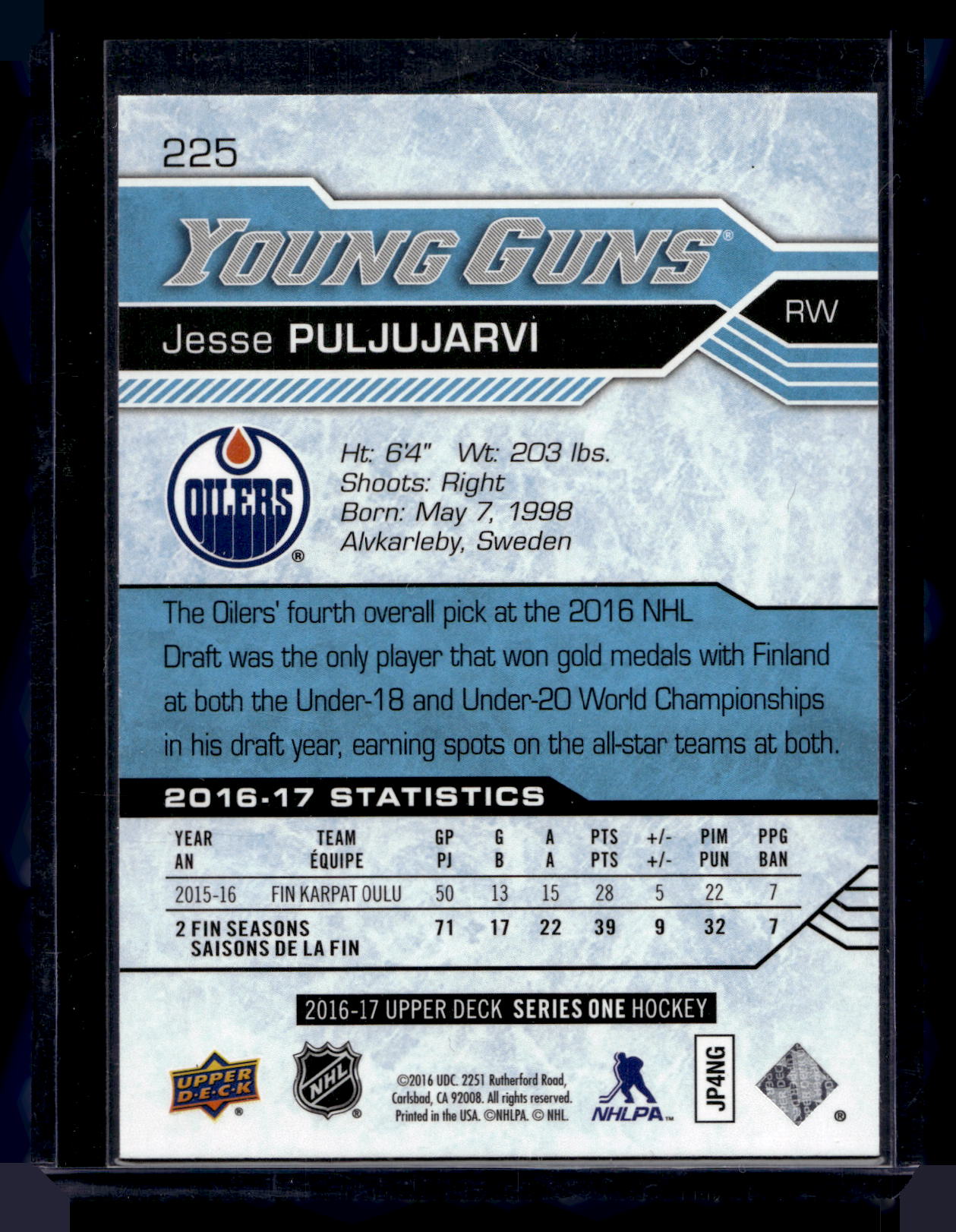 2016-17 Upper Deck - Young Guns - Jesse Puljujarvi #225 RC