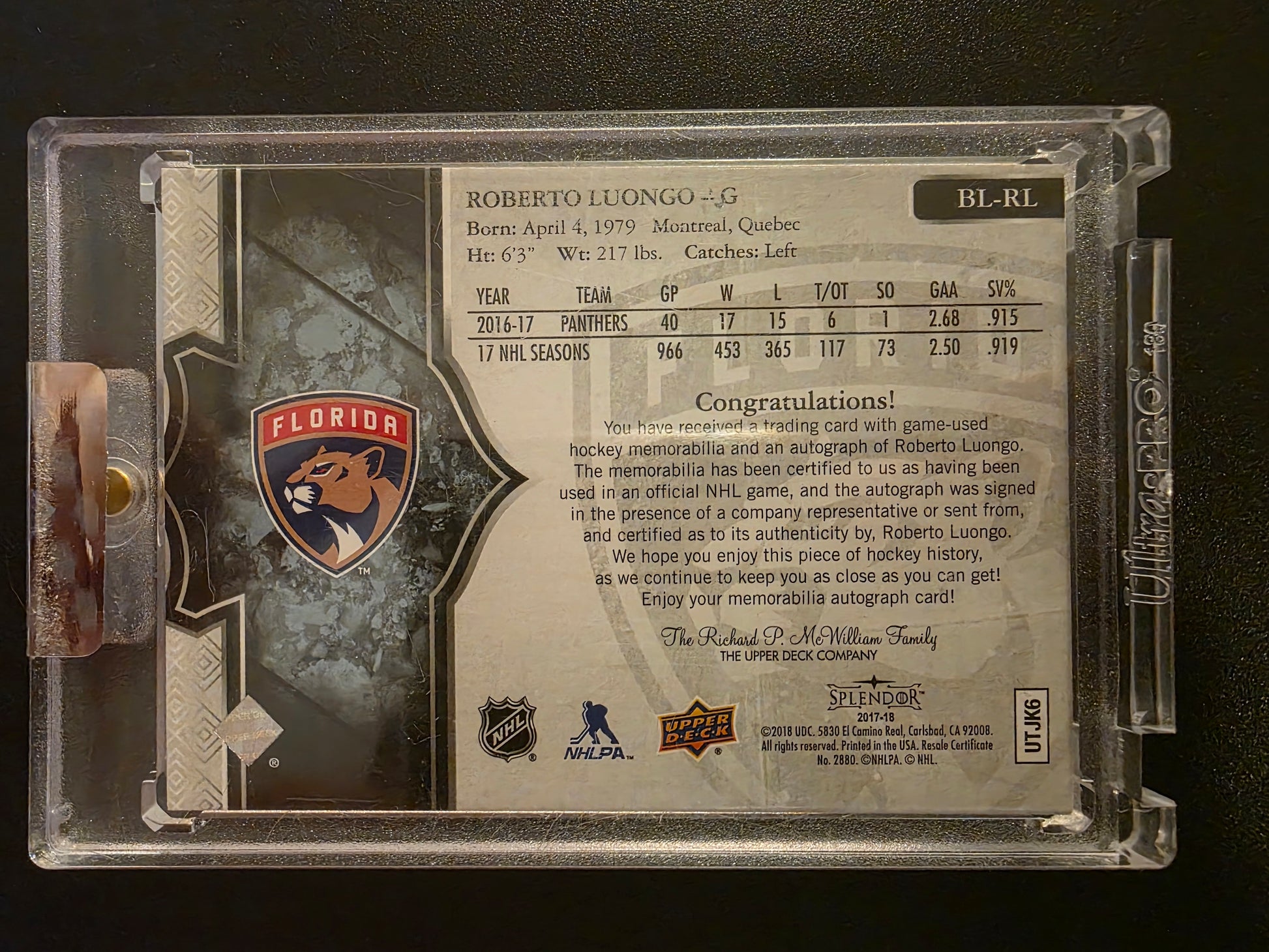 2017-18 Upper Deck Splendor - Borderless - Roberto Luongo #BL-RL /36