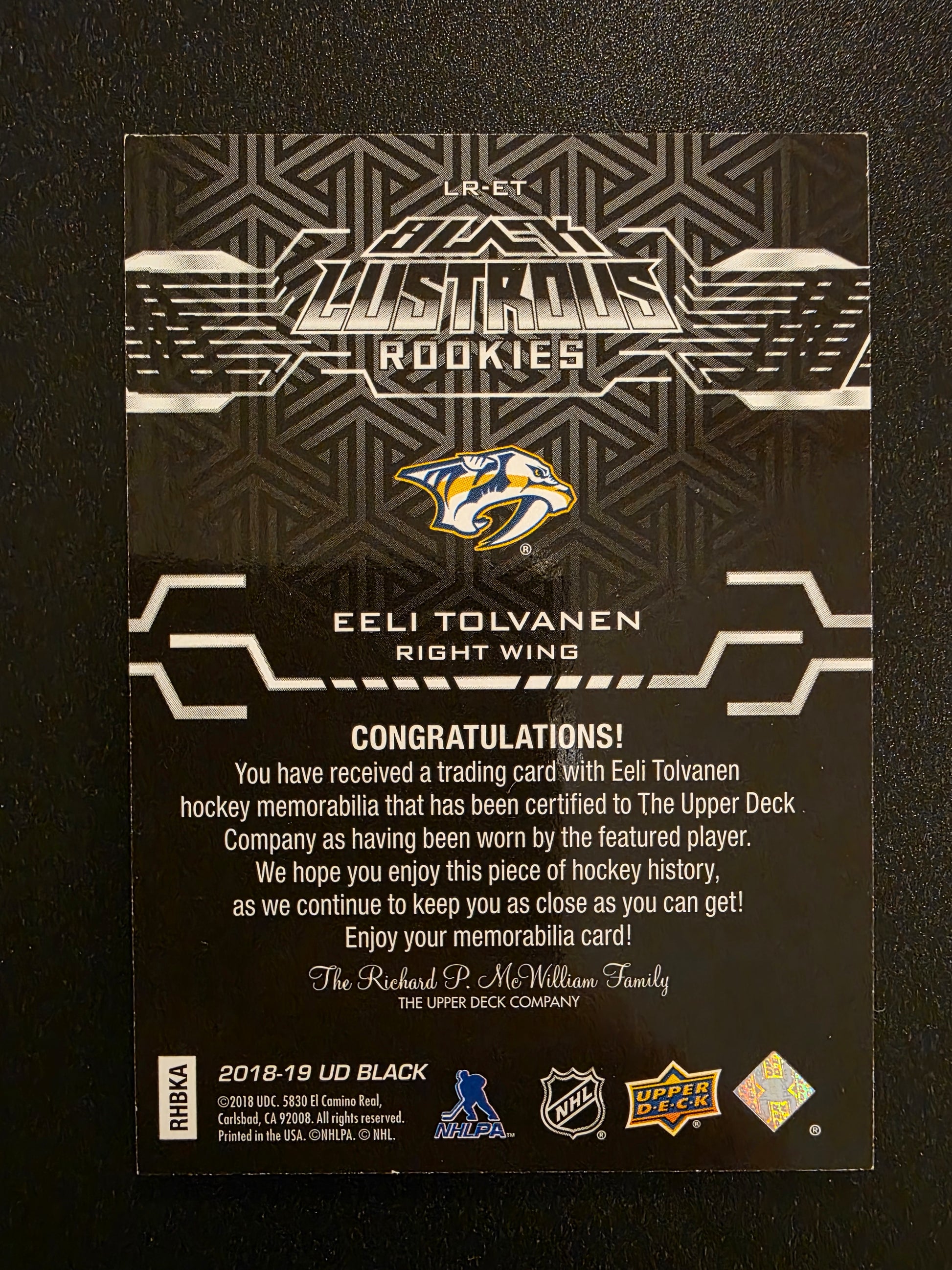 2018-19 Upper Deck SPx - UD Black Lustrous Rookies - Jerseys - Eeli Tolvanen #LR-ET RY