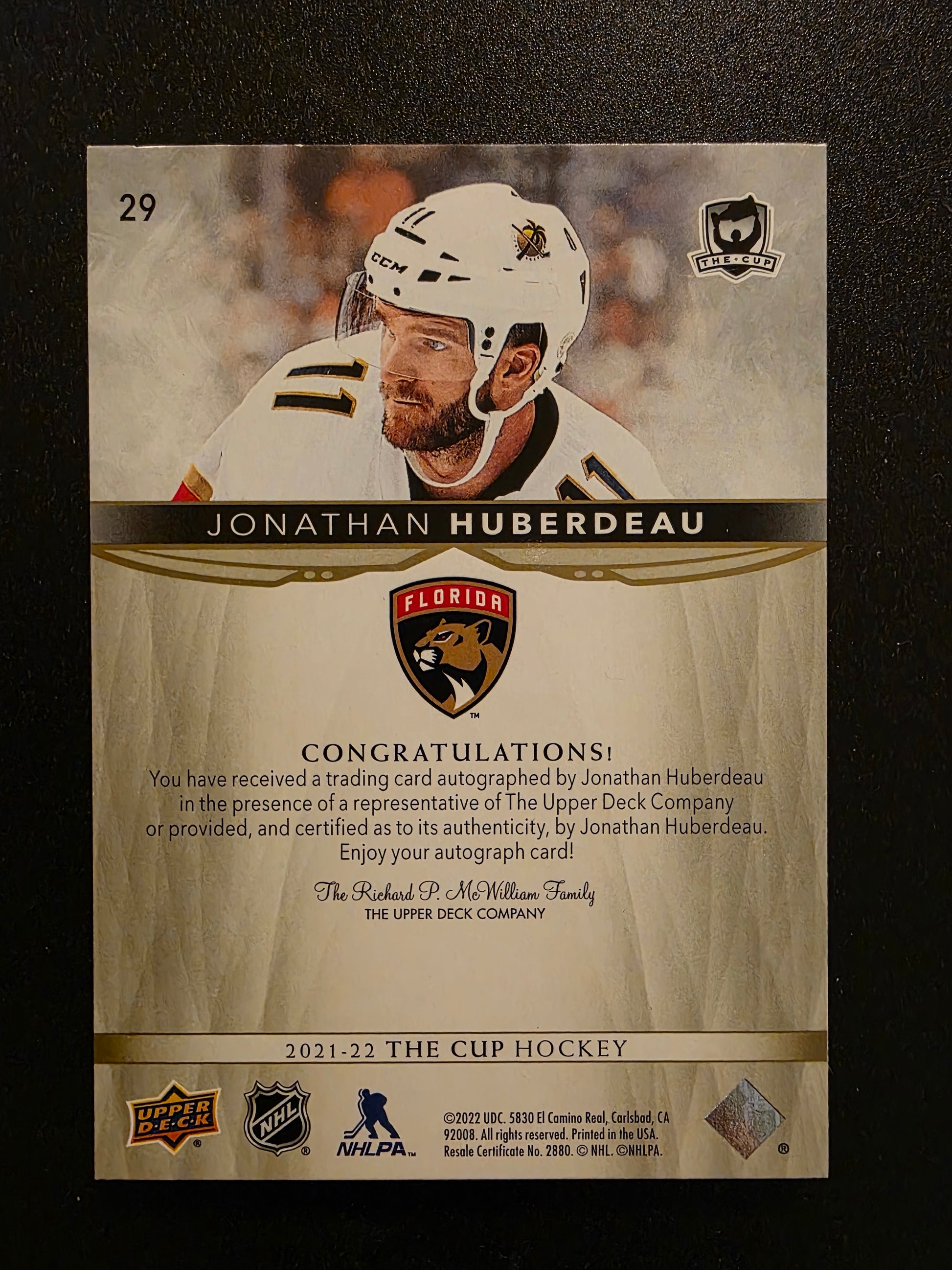 2021-22 Upper Deck The Cup - Gold Spectrum Foil Variation - Jonathan Huberdeau #29 /12