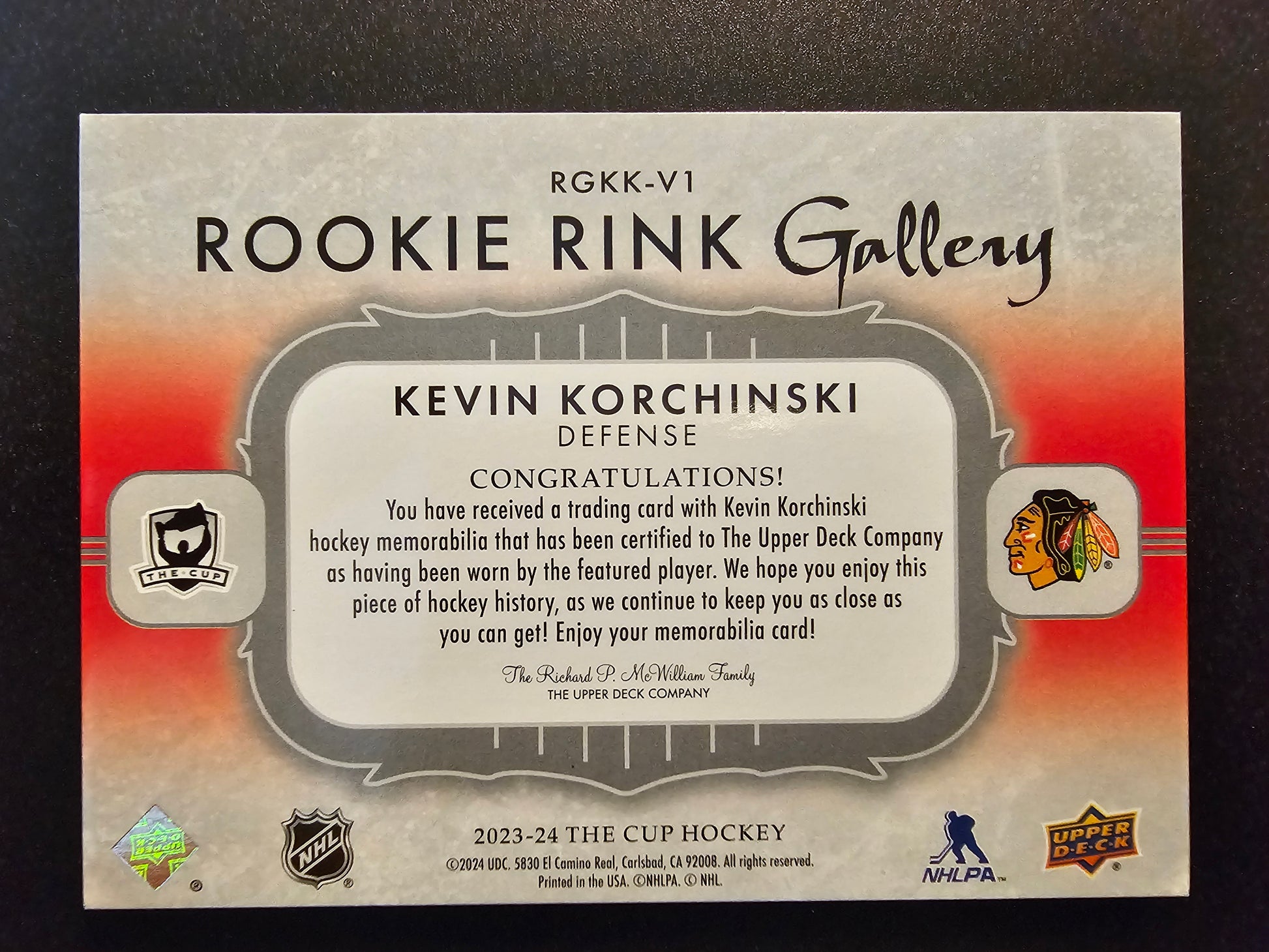 2023-24 Upper Deck The Cup - Rookie Rink Gallery - Kevin Korchinski #RGKK-V1 /49 RC