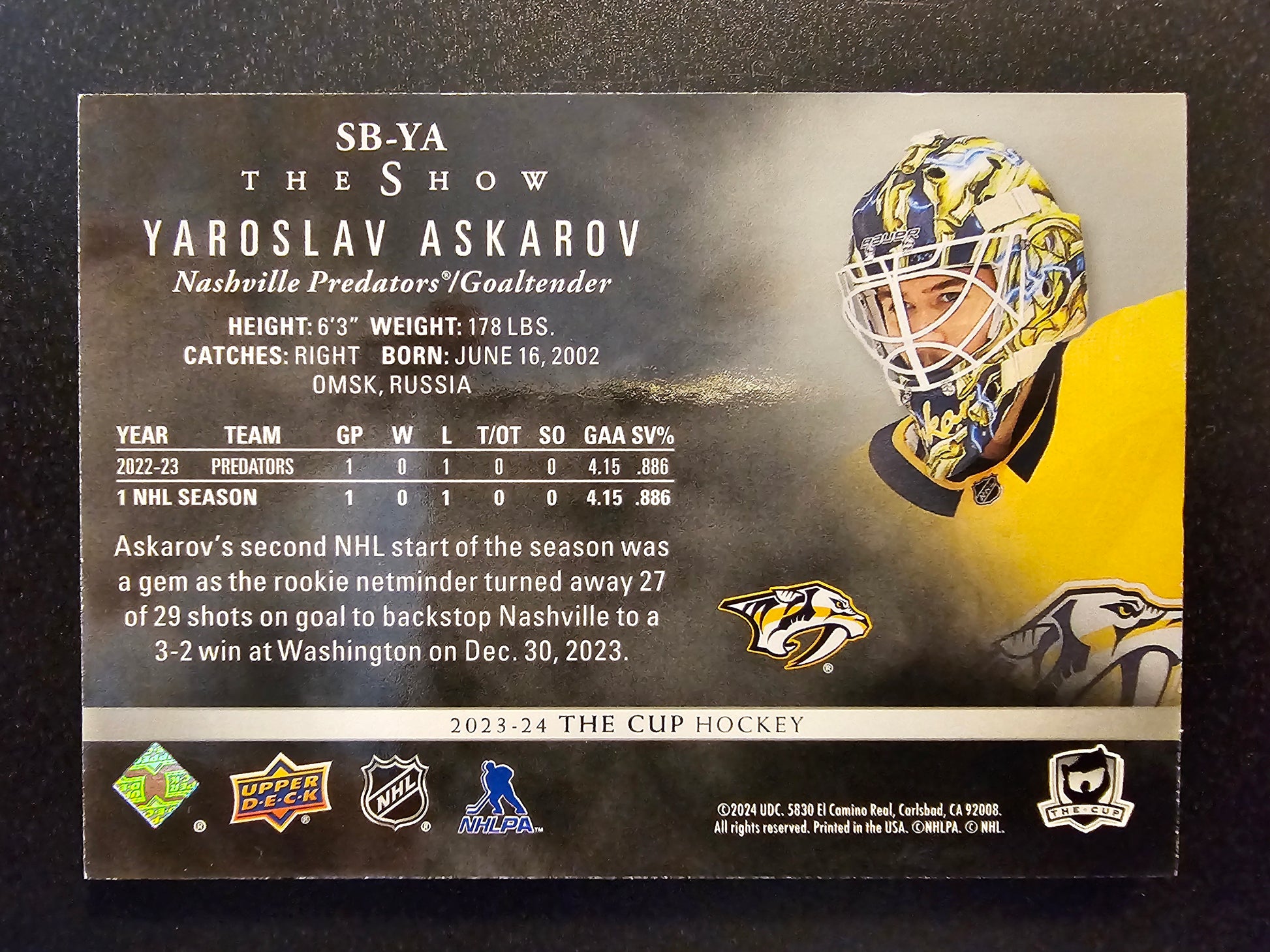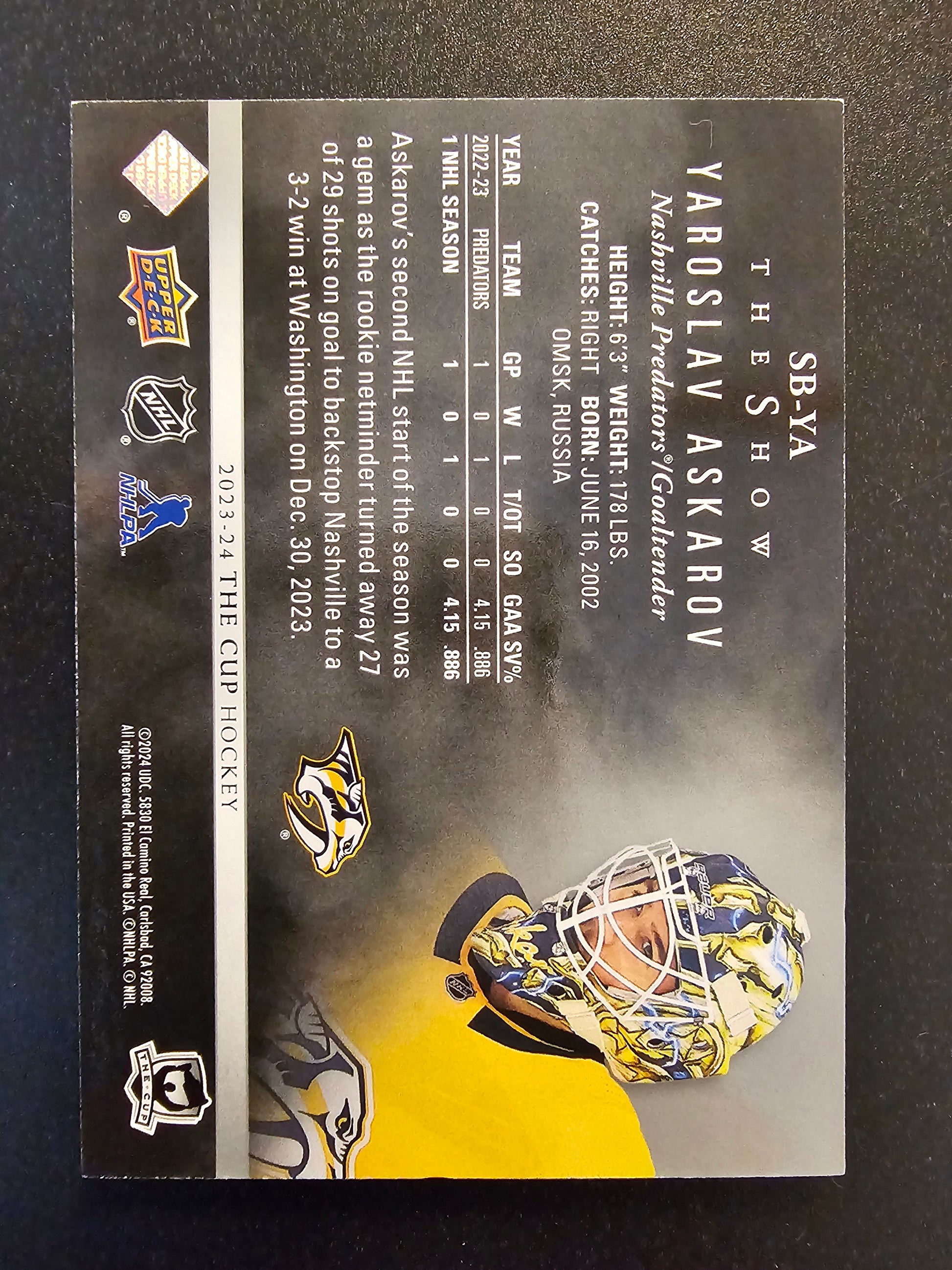 2023-24 Upper Deck The Cup - The Show Black - Yaroslav Askarov #SB-YA
